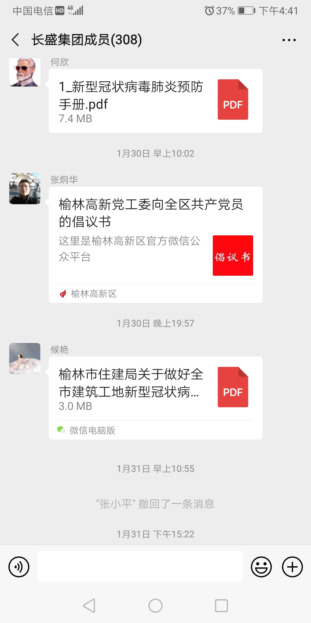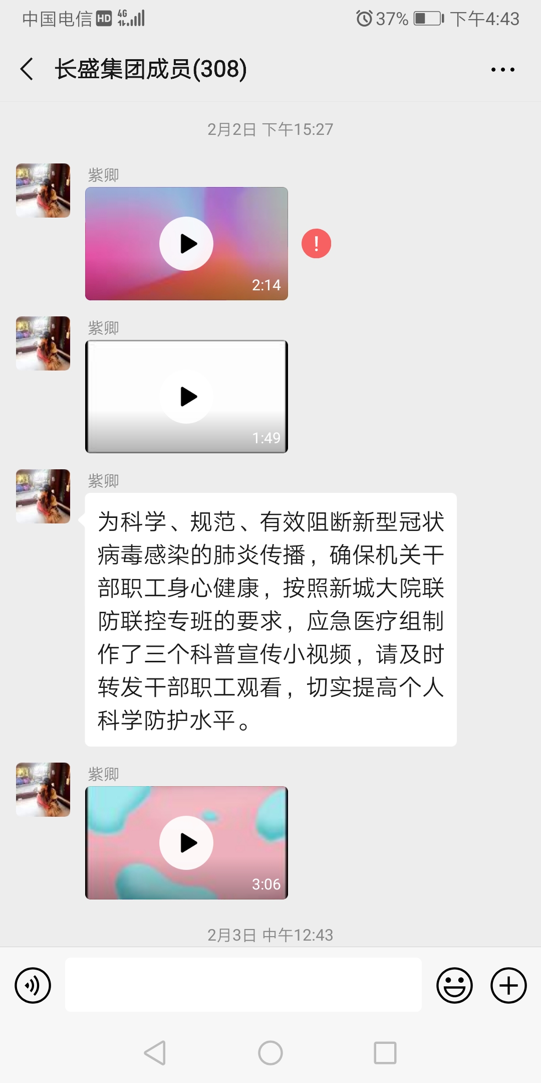 集團(tuán)公司領(lǐng)導(dǎo)通過微信群發(fā)布新型肺炎防治知識(shí),供員工線上學(xué)習(xí)閱讀,提醒做好個(gè)人防護(hù)工作。