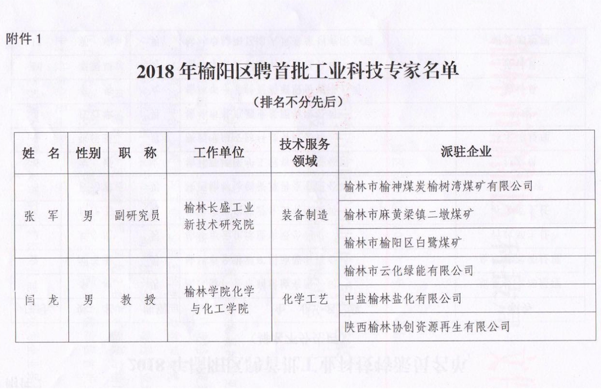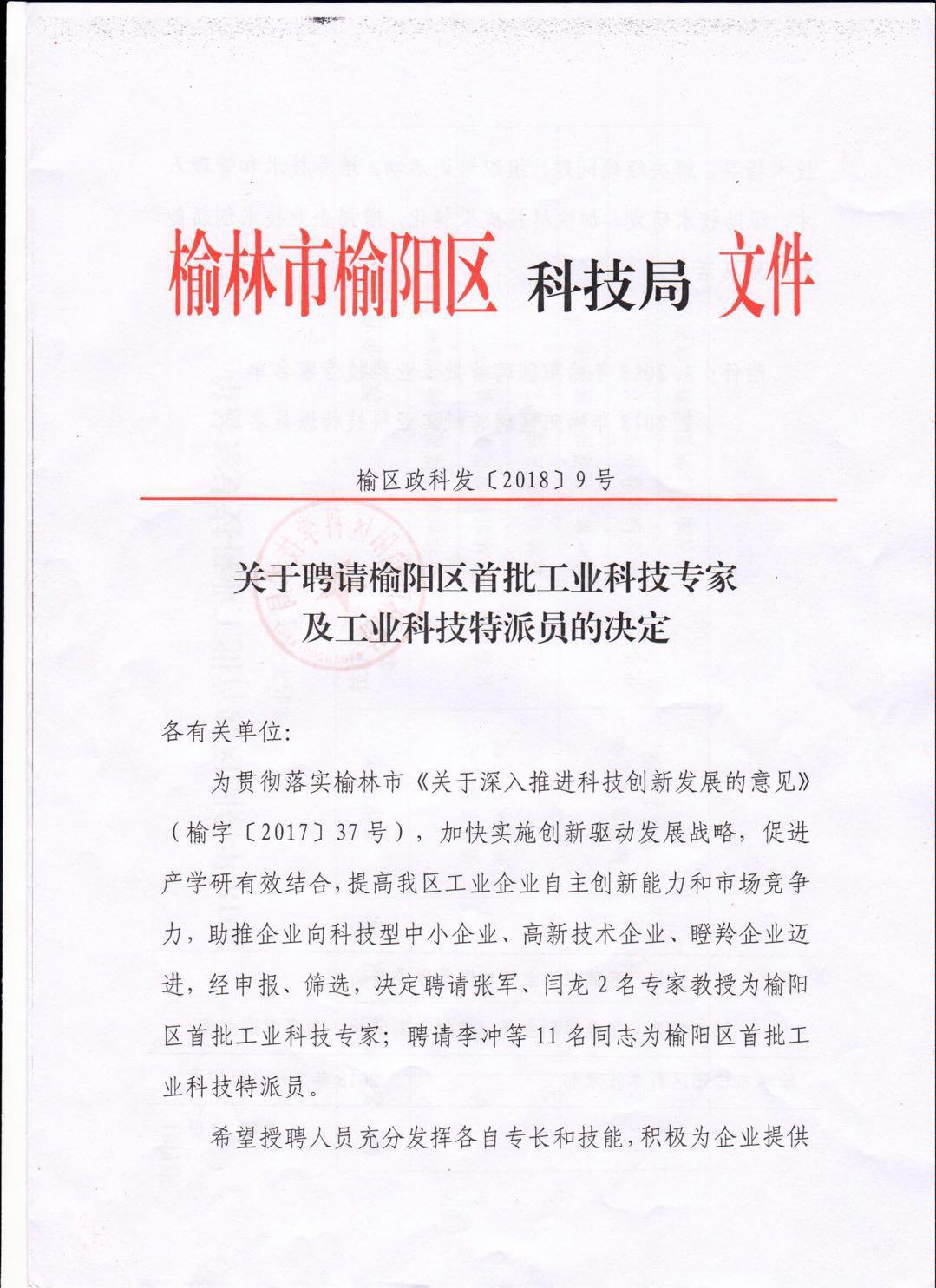 關(guān)于聘請榆陽區(qū)首批工業(yè)科技專家及工業(yè)科技特派員