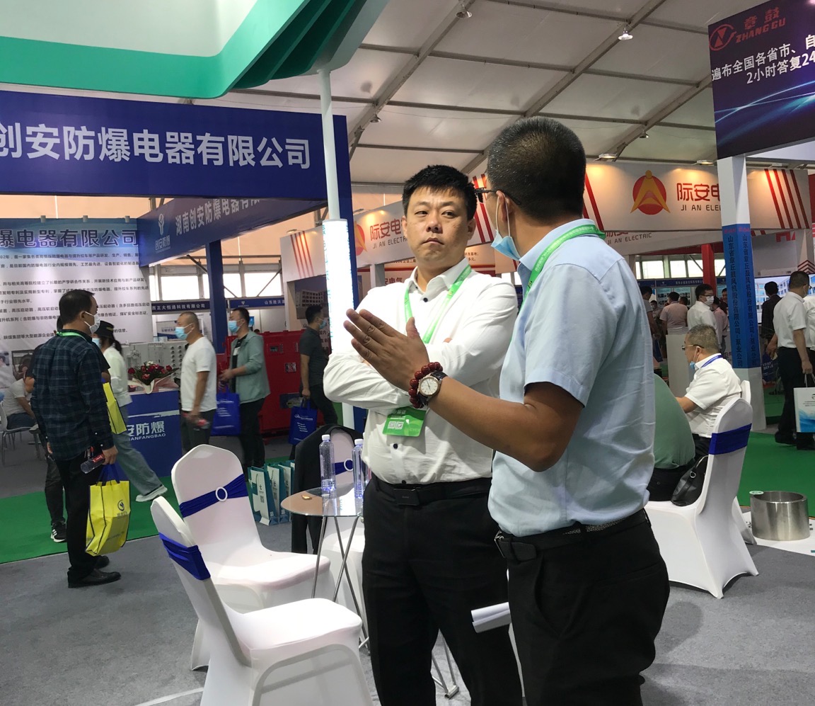 2020榆林煤博會云泰科技經理張炯華與其他企業(yè)進行技術交流