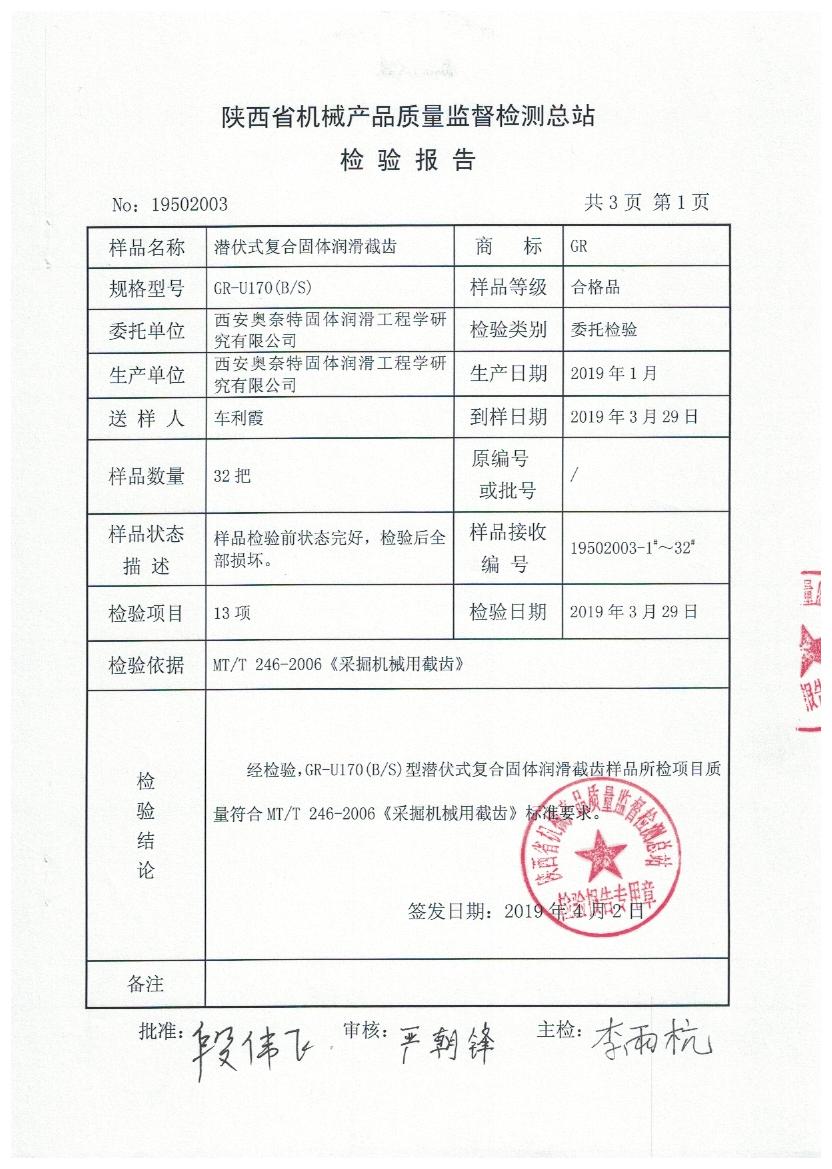 截齒檢驗(yàn)報(bào)告u170