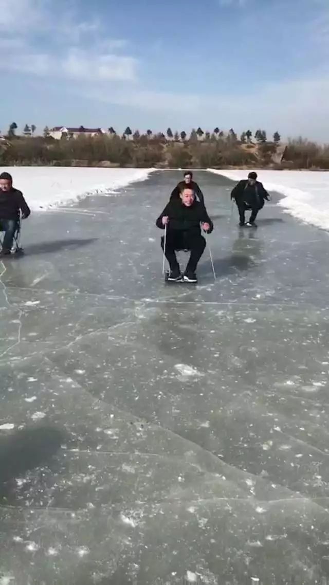 冰上滑板,最考驗(yàn)一個(gè)人的平衡和膽量,一個(gè)不小心就會(huì)“人仰馬翻”,大家仿佛回到了孩童時(shí)代。