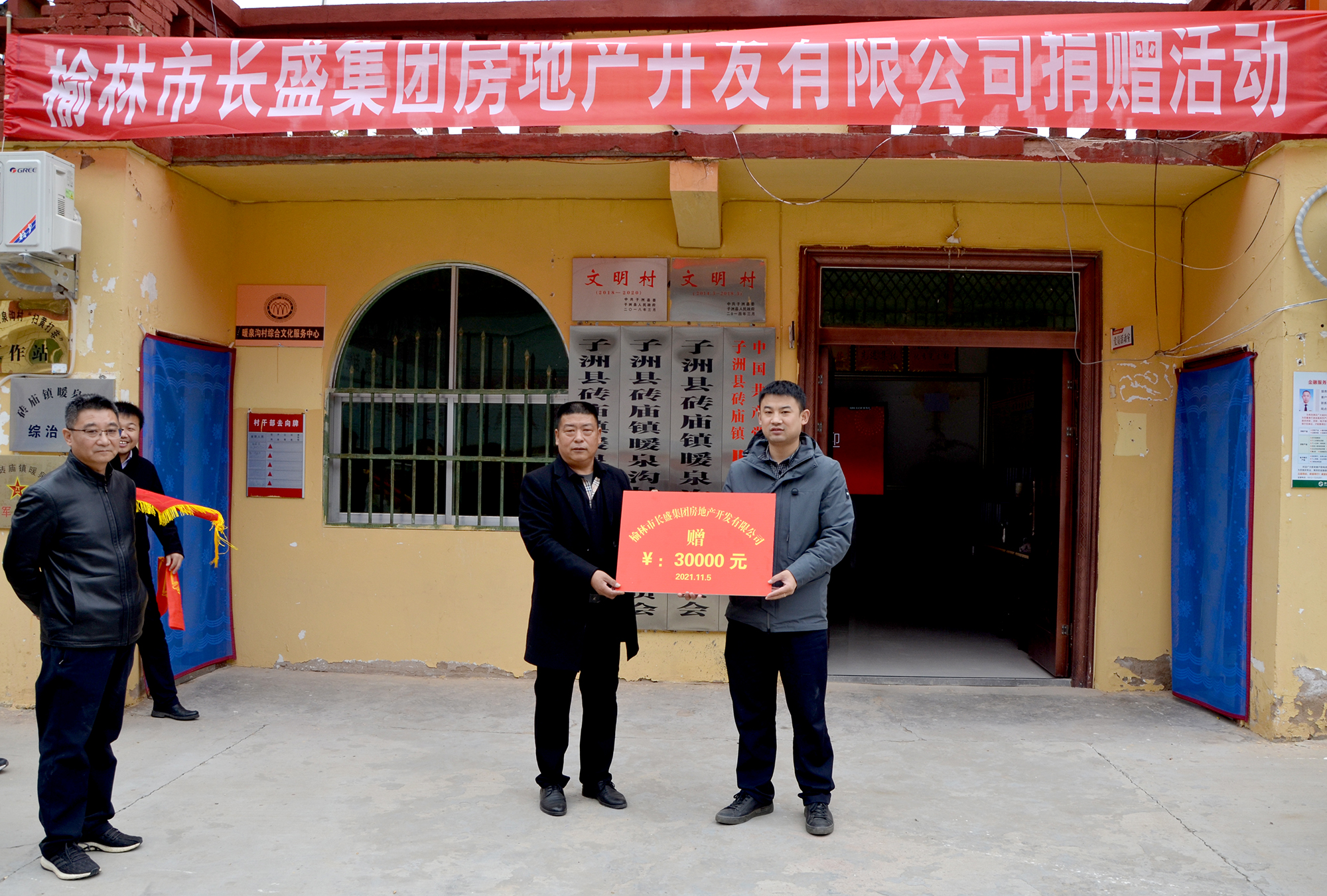 日,長盛集團(tuán)房地產(chǎn)開發(fā)有限公司總經(jīng)理徐遼飛一行,來到子洲縣磚廟鎮(zhèn)暖泉溝村開展困難慰問和捐贈活動。