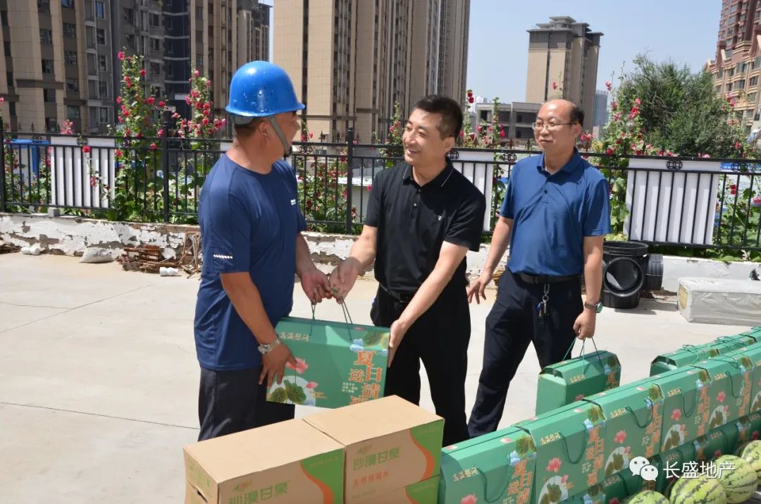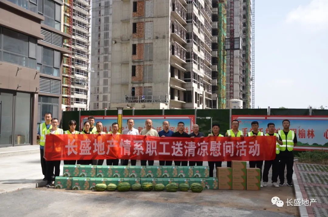 7月13日,榆林市長(zhǎng)盛集團(tuán)房地產(chǎn)開發(fā)有限公司開展2022年度“情系職工送清涼”慰問(wèn)活動(dòng),看望慰問(wèn)榆林區(qū)內(nèi)在建項(xiàng)目一線員工,為他們送去小米、綠豆、白糖、西瓜等防暑降溫物品。