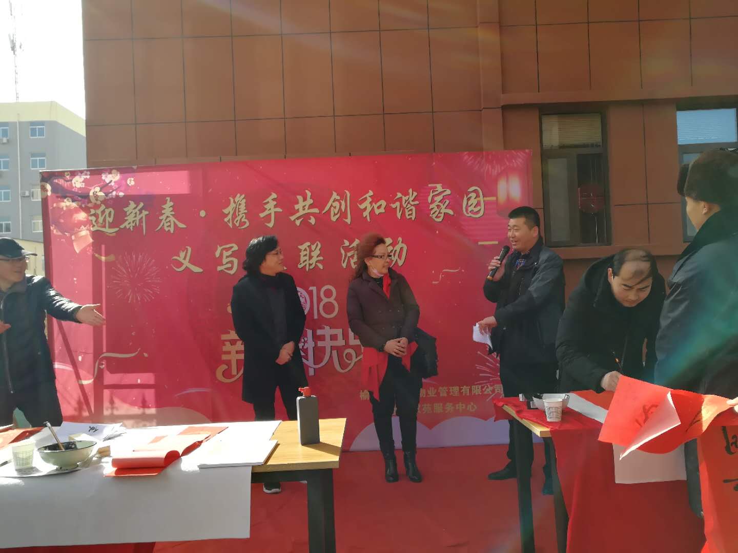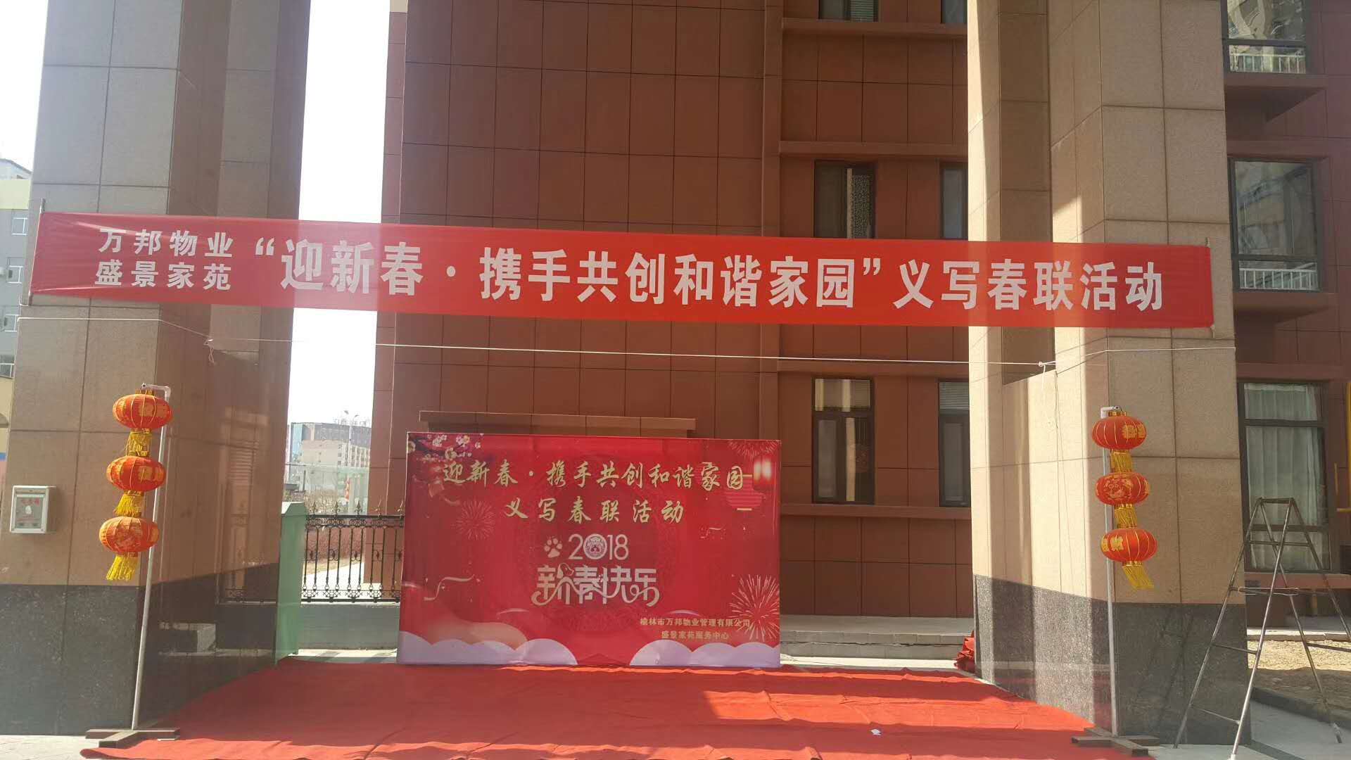公司為喜迎新春,營造歡樂和諧的春節(jié)節(jié)日氛圍,同時增進(jìn)業(yè)主的鄰里關(guān)系,進(jìn)一步弘揚(yáng)傳統(tǒng)文化,榆林市萬邦物業(yè)管理有限公司于2018年28日舉辦了盛景家苑小區(qū)“迎新春·攜手共創(chuàng)和諧家園”義寫春聯(lián)活動。