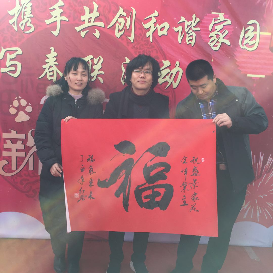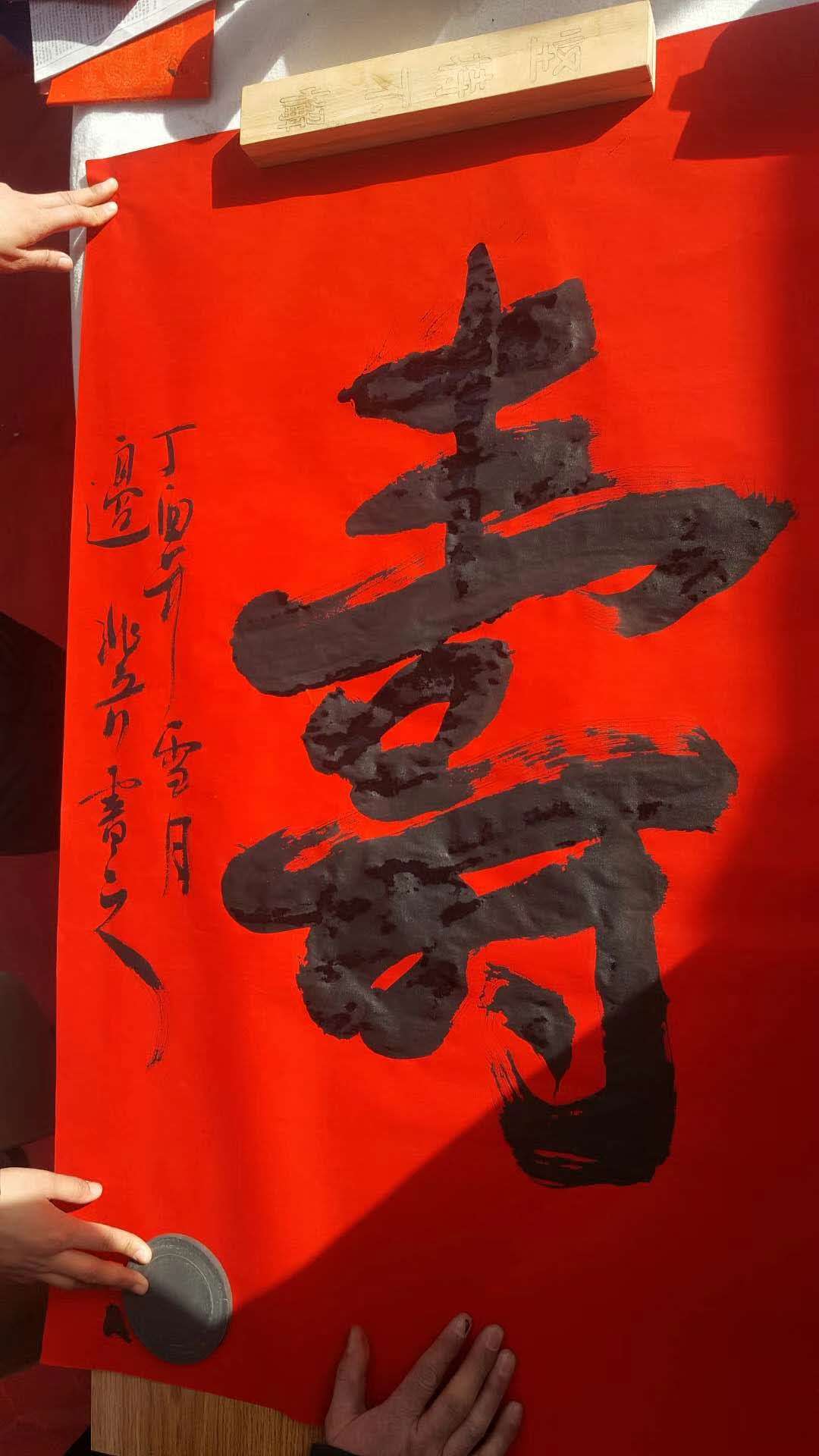 書法家們揮毫潑墨,書寫了多幅大紅春聯(lián),其中拓宏飛先生為盛景家苑全體業(yè)主書寫了大大的“?!弊郑磉_(dá)對全體業(yè)主的美好祝愿。