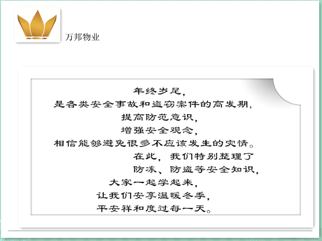 共同做好防火、防盜、防凍的安全預(yù)防工作!