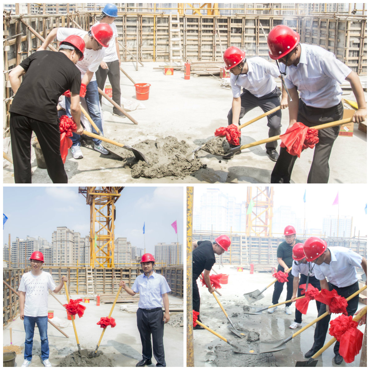 長(zhǎng)盛地產(chǎn)董事長(zhǎng)與翔宇地產(chǎn)代表將最后一方混凝土澆筑到位,這標(biāo)志著盛翔華庭項(xiàng)目主體結(jié)構(gòu)封頂正式完成。